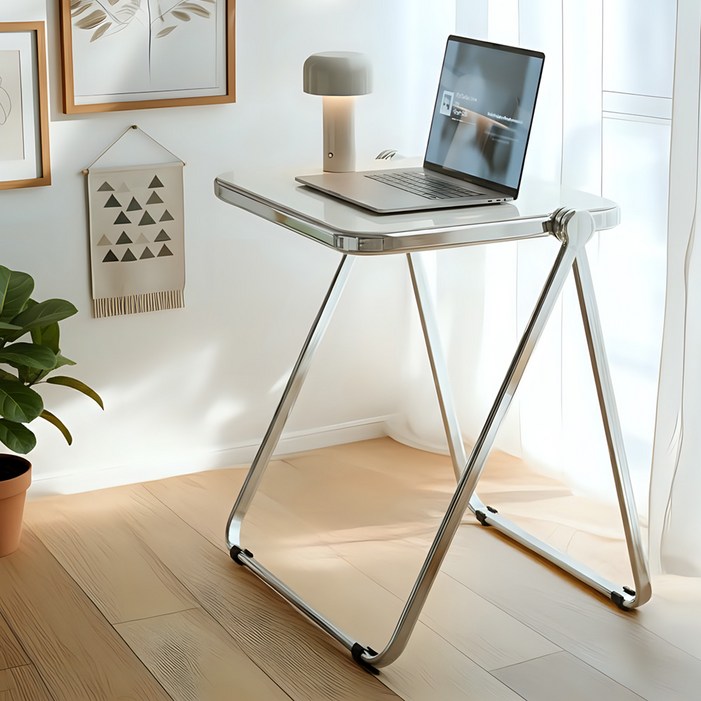 리비니아 디코 미드센츄리 모던 크롬 폴딩 접이식 책상 사이드 테이블 2Colors, 투명