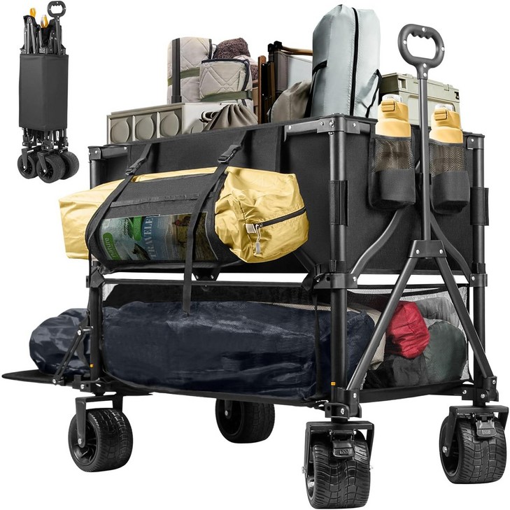 AORAN 슈퍼 이층 캠핑 웨건 접이식 캠핑웨건, 1개, 블랙