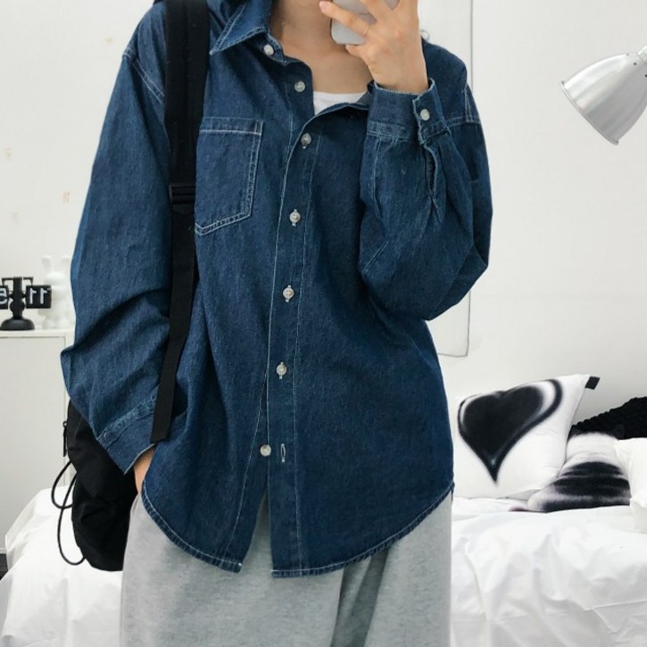 최저가2col 밀레니엄 루즈핏 스티치 긴팔 데님 셔츠