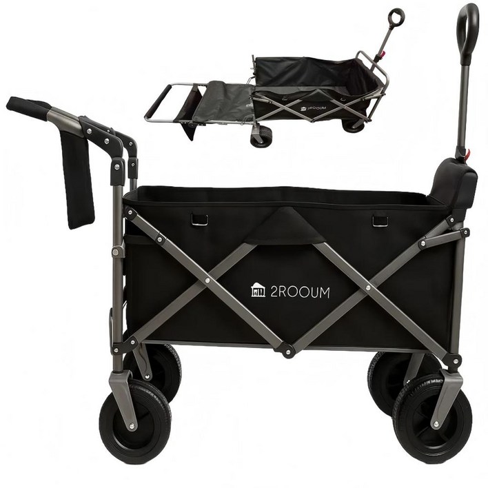2ROOUM 접이식 캠핑 마트 폴딩 카트, 특대형 확장 16263103cm, 1개, 블랙
